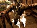 In order to defeat him, throw everything you have at him. He has no weak point. Make sure you have a Magnum (level 4), assault shotgun (level 4), and MRL (level 4). Use the Magnum first. After you shoot him enough times, he will jump onto the rooftop and run around to a certain spot, where he will shoot his tentacles down the wall and pop up directly in front of you to attack. This cannot be dodged. He will then jump up and attempt to crush you. Dodge this, and repeat the process. When you run out of ammo for the Magnum and assault shotgun, use the MRL. Shoot all eight rockets at him. If he survives, finish him off with the handgun. Note: He can grab you and hold you in the air. This will damage you until you die or shoot him enough times to make him let you go.