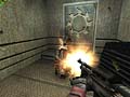 When nearing the end of the game in single player mode, you will have to catch the tram to proceed to the next area. The tram is located immediately after "The Shooting Gallery." In order to avoid fighting most of the guards, equip the Heavy Machine Gun. Next, proceed down the track towards the small door to the left. Inside, kill the guard. Once the other guards stop rushing in and shooting at you, collect the health vial (just behind the desk), dash out of the room, head towards the front right side corner of the train, and duck down immediately. This will prevent gun fire from hitting your character. Stay ducked down until the loading screen appears.