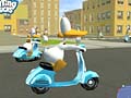Use the following trick to get ten feathers at a time. When you have reached East and West Ducktown, go to West Ducktown. Go to the school or swimming pool. Look around and you will see some ducks playing with a ball. If you have teeth or an alligator mask, put them on so that the other ducks will run away and not take the ball. The ball will have a blue and white pattern on it. If you are at the school, take their ball to the swimming pool; or if you are at the swimming pool, take their ball to the school. Once you have both balls, take one ball, find the other ball, and push them together. The two balls will turn into a new patterned ball. When you score, instead of getting five feathers, you will now get ten. Beware; if you hit the ball too hard it will separate into two balls again. If this happens, just take one to the other and push them together again. It is faster to make money if you take the swimming pool ball to the school yard, but it will work at the pool also if you prefer to play water polo over soccer.