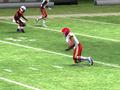 On offense, check the player weapons (L). If one of the receivers has a star, it indicates that this player can make a hard (tough) catch. If a player has a shoe with angel wings on it, it indicates that player is fast. For other weapons, check the manual or the game option "Player Weapons".